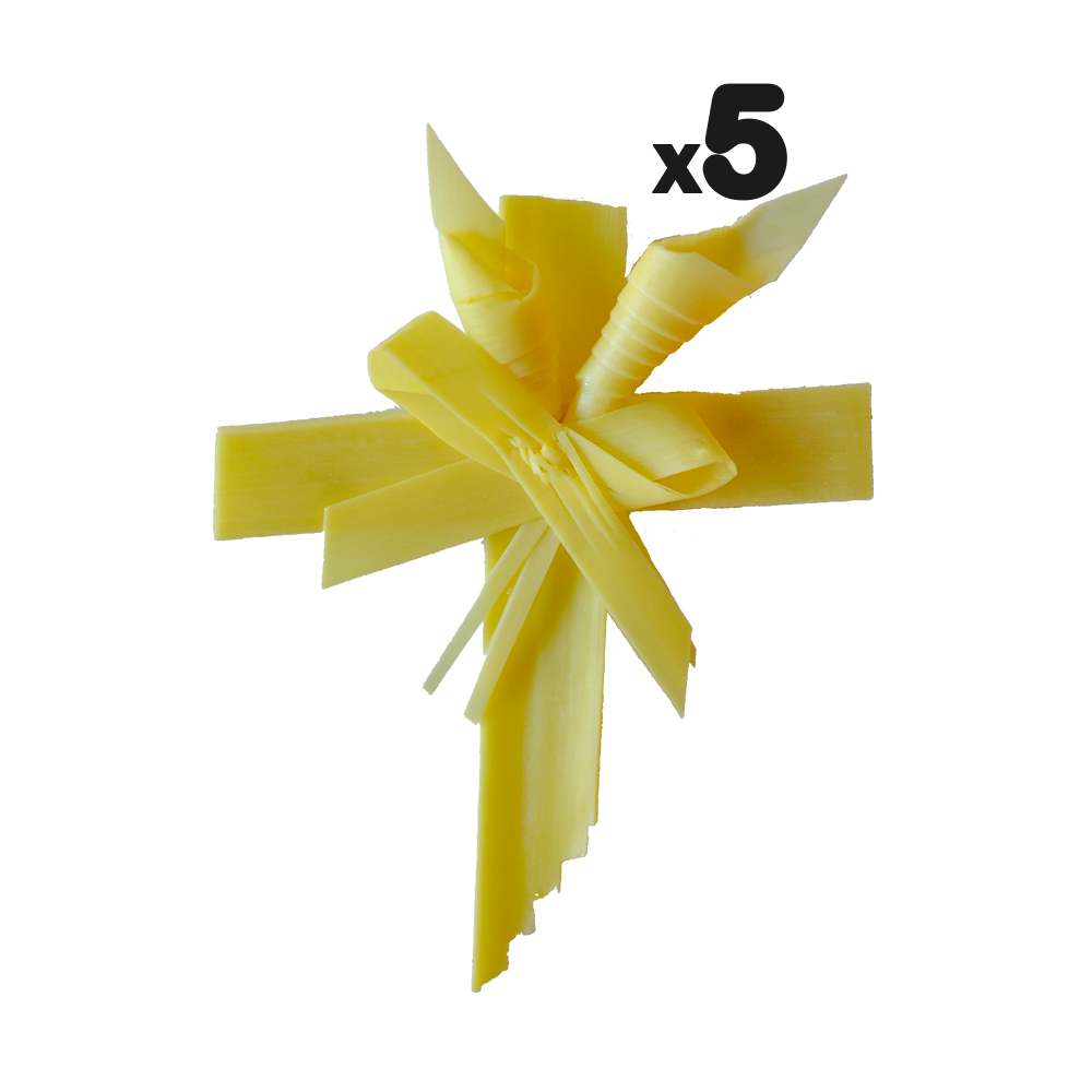 PACK 5 Solapas-Broche en forma de cruz con lazo y dos pingajos centrales coronando. Tamaño aproximado 10CM. Van envasadas individualmente.